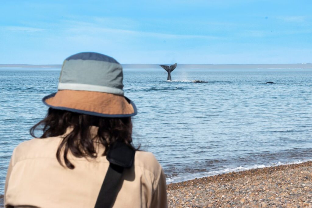 El avistaje de ballenas en Península Valdés ofrece dos modalidades principales: desde la costa o a través de excursiones embarcadas. Para quienes prefieren la observación terrestre, el Área Natural Protegida El Doradillo se presenta como una opción destacada. Ubicada a solo 15 kilómetros del centro de Puerto Madryn, esta área es reconocida por la cercanía con la que las ballenas en su mayoría con sus ballenatos nacidos en la temporada se aproximan a la orilla, especialmente durante la marea alta.