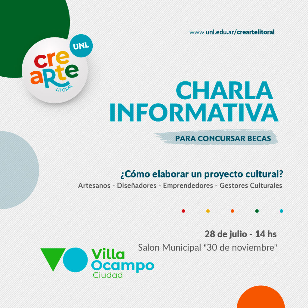 La Municipalidad, junto a la Universidad Nacional del Litoral, invita a artistas, diseñadores y gestores culturales a participar de una charla informativa sobre las becas CreArte.