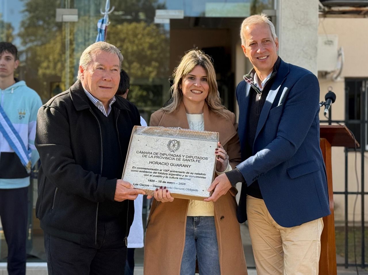 El acto reunió a autoridades, vecinas y vecinos, y en este espacio se recordó la vida de Eraclio Catalín Rodríguez Cereijo, hijo de un hachero correntino y de una inmigrante española, que con su guitarra y su palabra supo cantar verdades y denunciar injusticias. “Este homenaje no es sólo una placa. Es una memoria viva y un testimonio de que el arte nacido del pueblo no muere jamás. Gracias a Las Garzas por darnos a Horacio, y gracias a Horacio por darnos tanto”, concluyó la Diputada.