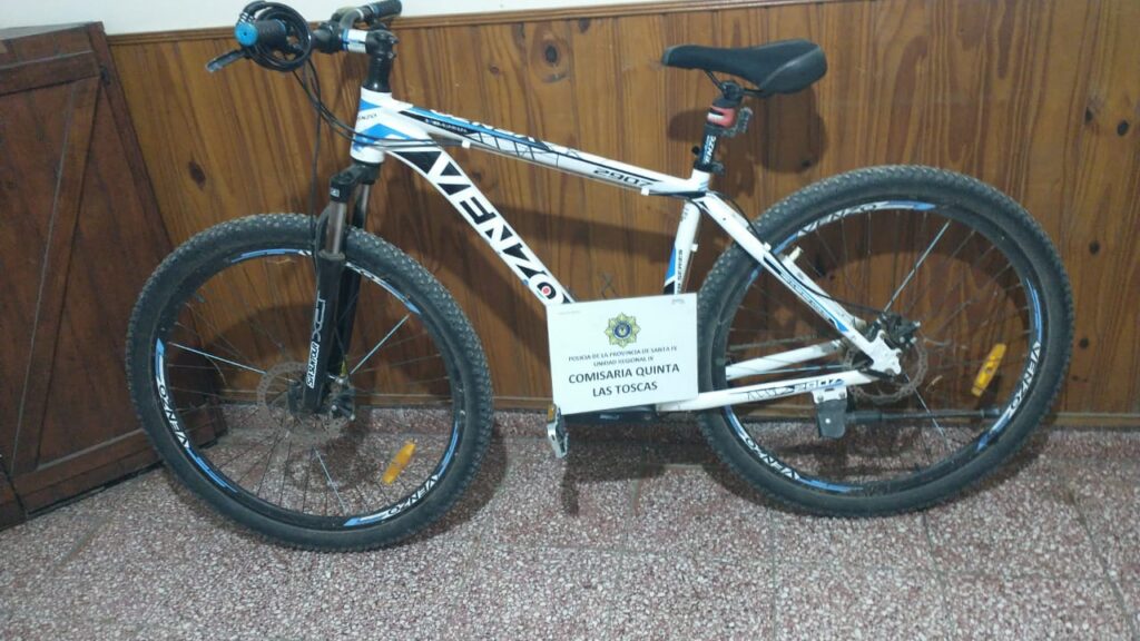 En la madrugada del viernes 8 de agosto, alrededor de la 1:30 h, personal de la Comisaría V de la Unidad Regional IX recibió la denuncia de una mujer mayor de edad, domiciliada en Las Toscas, quien manifestó que desconocidos habían ingresado a su propiedad y sustraído una bicicleta marca Venzo.