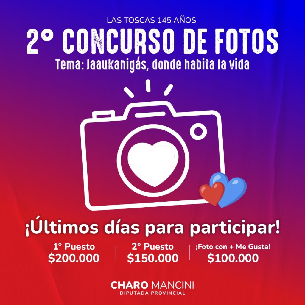 En el marco del 145° Aniversario de Las Toscas, la Diputada Provincial Charo Mancini invita a sumarse al 2° Concurso de Fotos “Jaaukanigás, donde habita la vida”, una propuesta que pone en valor la riqueza natural del humedal y la identidad de la ciudad. La convocatoria está destinada a personas mayores de 13 años, oriundas o residentes en Las Toscas, bajo el eje temático “Naturaleza Viva”, con el objetivo de retratar paisajes, flora y fauna del Sitio Ramsar Jaaukanigás.