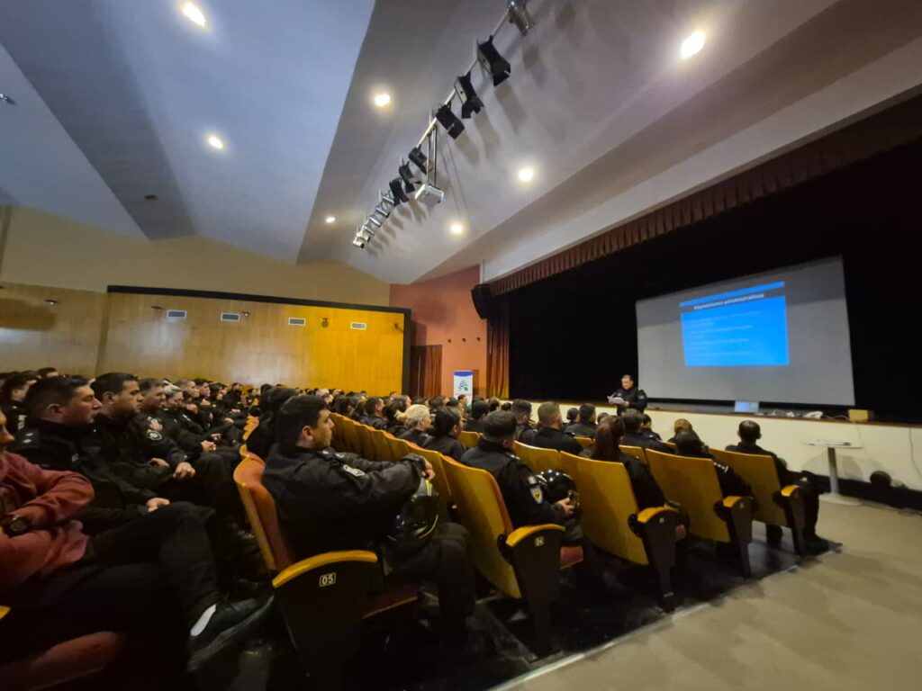 El miércoles 20 de agosto, a las 15:00 horas, se llevó a cabo una capacitación sobre el «Protocolo de Uso Progresivo de la Fuerza» en el Auditorio Municipal de Avellaneda. La charla estuvo a cargo del Subdirector de Policía Cristian Sánchez, Subjefe de la Unidad Regional IX, junto a la Comisario Supervisor Lorena Ibarra, Jefa del Área de Capacitación.