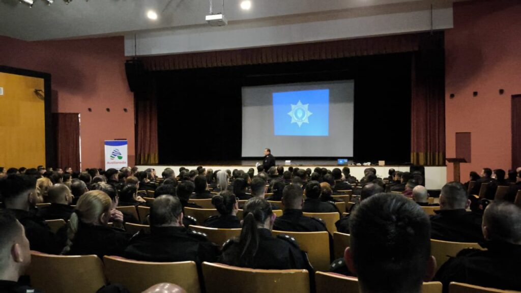 El miércoles 20 de agosto, a las 15:00 horas, se llevó a cabo una capacitación sobre el «Protocolo de Uso Progresivo de la Fuerza» en el Auditorio Municipal de Avellaneda. La charla estuvo a cargo del Subdirector de Policía Cristian Sánchez, Subjefe de la Unidad Regional IX, junto a la Comisario Supervisor Lorena Ibarra, Jefa del Área de Capacitación.