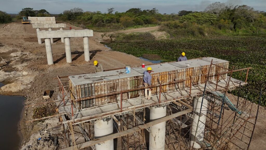 “Por eso estamos construyendo el puente Pindó, que ya superó el 40 % de avance de obra, finalizando también con éxito el pilotaje y la construcción de columnas. Ahora estamos trabajando en los cabezales, y uno ya está completamente hormigonado”, detalló el ministro Enrico.
