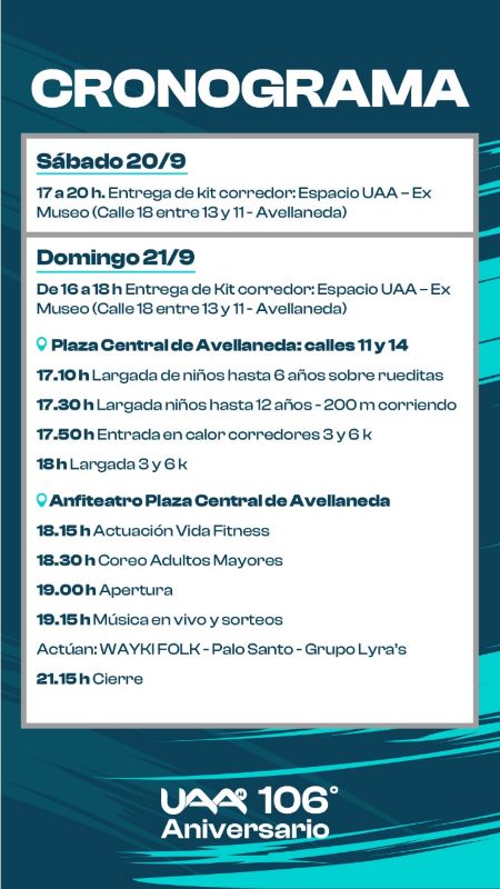 17 a 20 h. Entrega de Kit corredor (Espacio UAA – Ex Museo) Calle 18 entre 13 y 11. Avellaneda