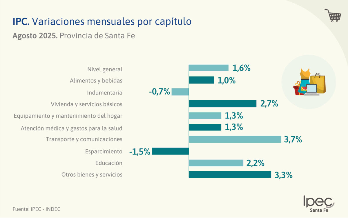 El Insituto Provincial de Estadística y Censos publicó el Índice de Precios al Consumidor correspondiente al mes de agosto de 2025.
