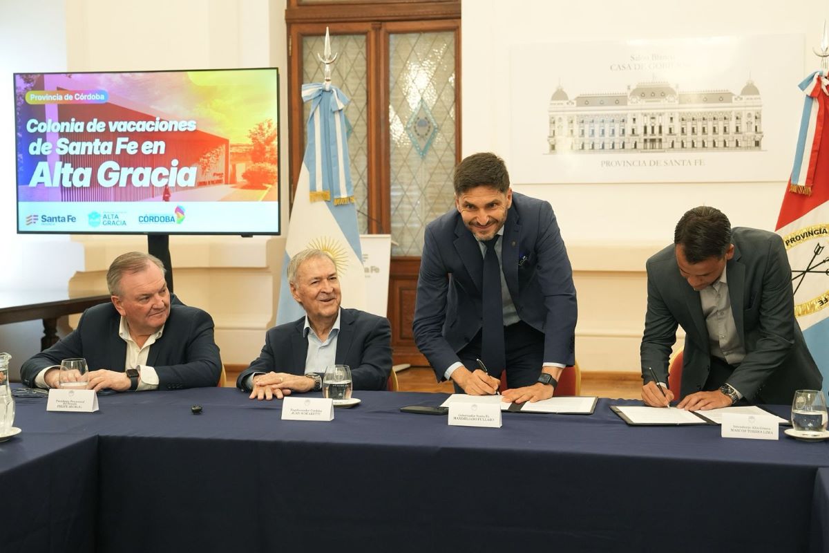 El gobernador de la Provincia, Maximiliano Pullaro, firmó el miércoles un convenio de recuperación y puesta en valor del predio de la Colonia de Vacaciones de Santa Fe en Alta Gracia. El acuerdo fue celebrado junto al ex gobernador de Córdoba, Juan Schiaretti, la vicegobernadora, Gisela Scaglia, y el intendente de Alta Gracia, Marcos Torres Lima.
