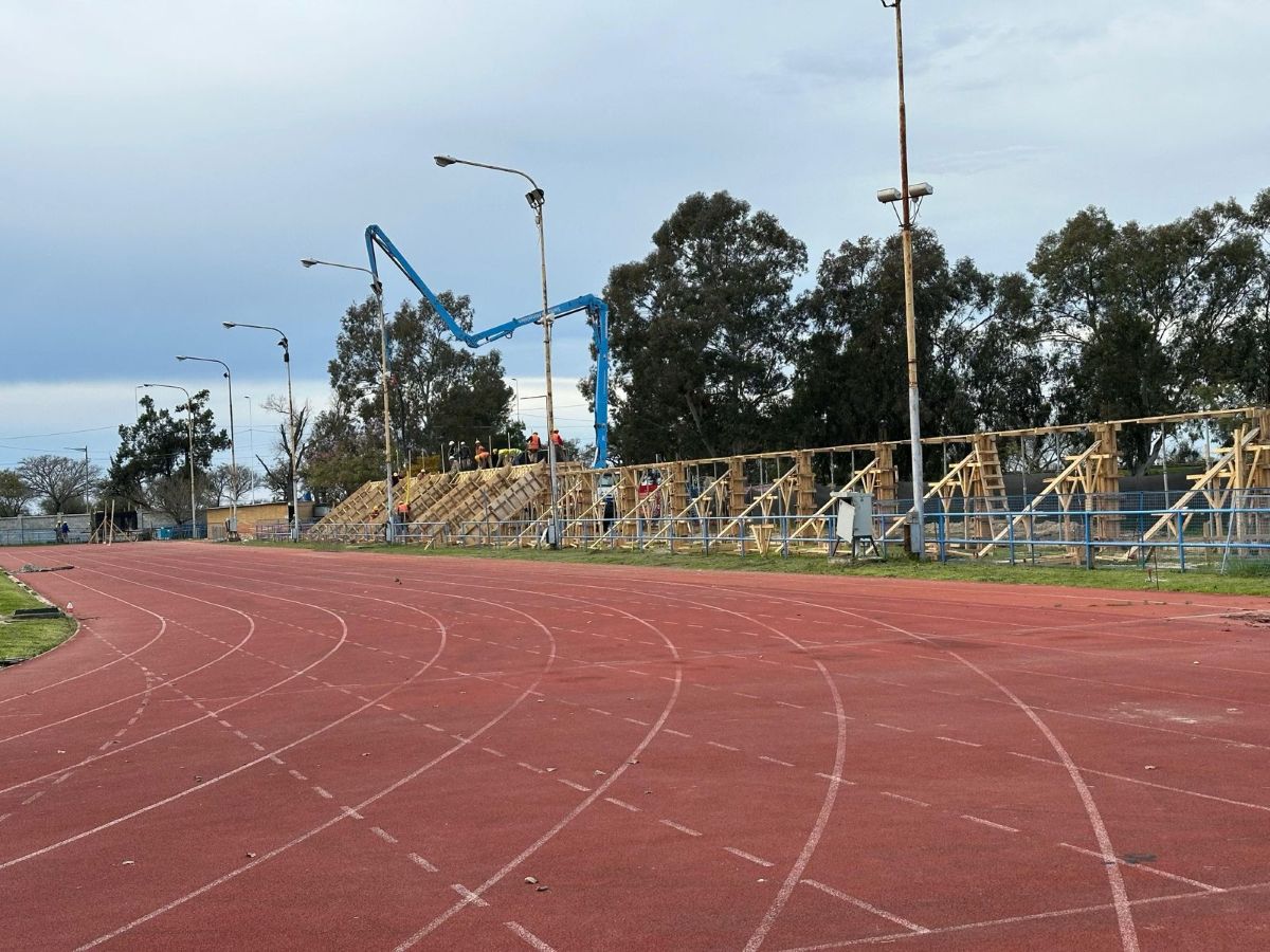 El secretario de Obras Públicas, Marcelo Pascualón, explicó que ya concluyó la fundación del sector de tribunas y el llenado de columnas, mientras se avanza con el hormigonado. También se retiró la antigua cabina de control y comenzaron los trabajos de base para una nueva estructura. El subsecretario de Arquitectura y Obras Públicas, Lucas Condal, detalló que se realizan tareas de adecuación de la iluminación y estudios de subbase para la pista.