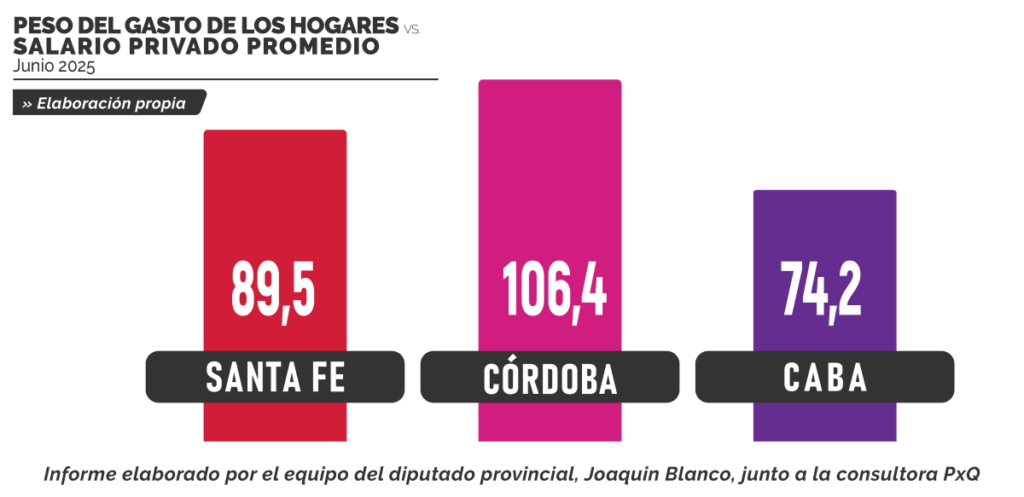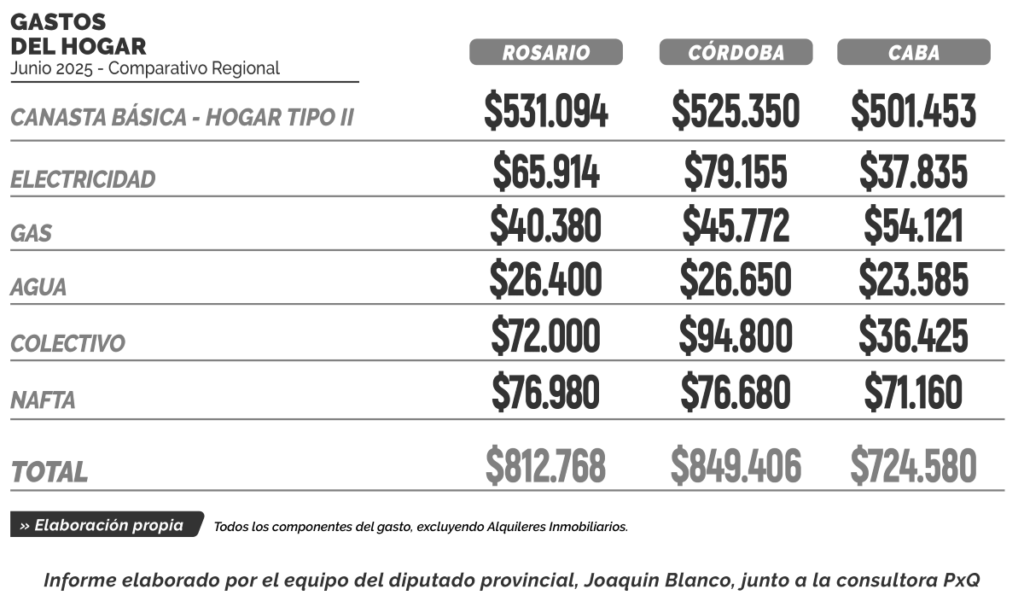 El informe elaborado por el diputado Blanco y la consultora PxQ demuestra una asimetría en lo que gasta una familia tipo en ciudades como Rosario y Córdoba si se lo compara con Buenos Aires. “La quita de subsidios al interior por parte del Gobierno Nacional afecta directamente el costo de vida, haciendo que a una familia tipo tenga que utilizar mayor porcentaje de su sueldo para cubrir los gastos del hogar”, destacó el socialista.