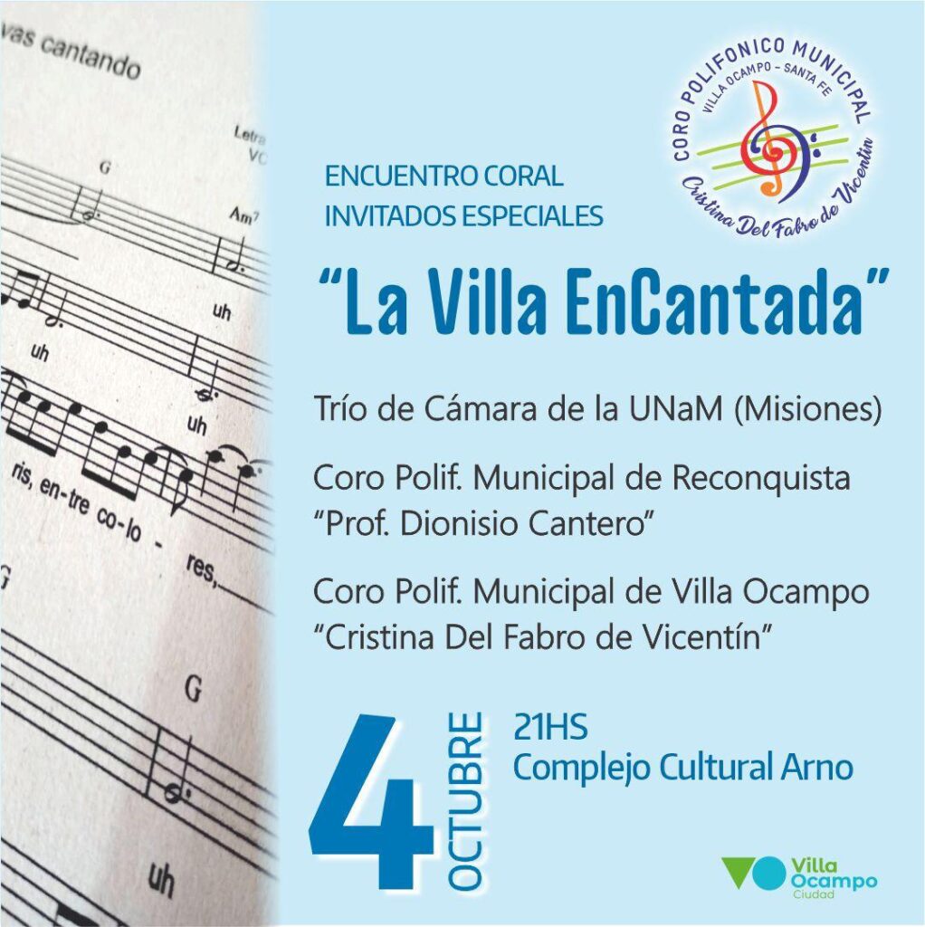 Villa Ocampo se prepara para vivir una noche única de música y emoción con el tradicional Encuentro Coral “La Villa EnCantada”, organizado por el Coro Polifónico Municipal “Cristina Del Fabro de Vicentín”.