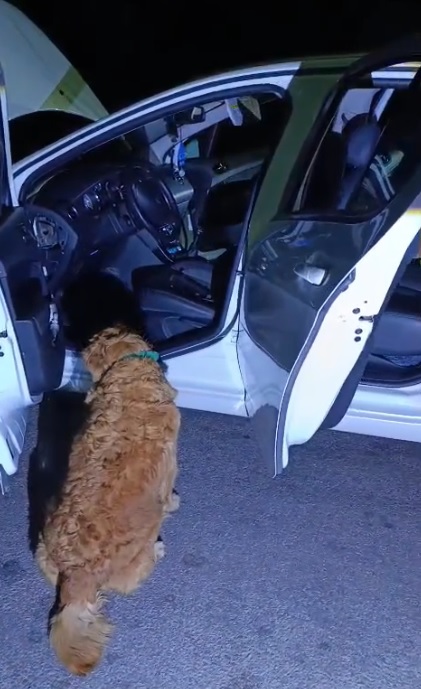 En el registro, los funcionarios contaron con la asistencia del can detector de narcóticos “Yasi”, el cual marcó la existencia de estupefacientes cuando pasó por la cabina del automóvil. Ante la reacción positiva, los gendarmes abrieron el tablero (sección interna del vehículo que contiene los indicadores, botones y pantalla) y hallaron 42 “ladrillos” envueltos en nylon negro y con una sustancia blancuzca.