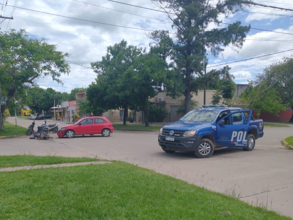 Este domingo 9 de noviembre, alrededor de las 14:30 horas, personal de la Comisaría 5ta. de Las Toscas intervino en un accidente de tránsito ocurrido en la intersección de calles 10 y 27. Por causas que se tratan de establecer, colisionaron un automóvil Chevrolet Celta, conducido por una vecina de la localidad, y una motocicleta Zanella 125 c.c., guiada por un hombre mayor de edad, también domiciliado en ese medio.