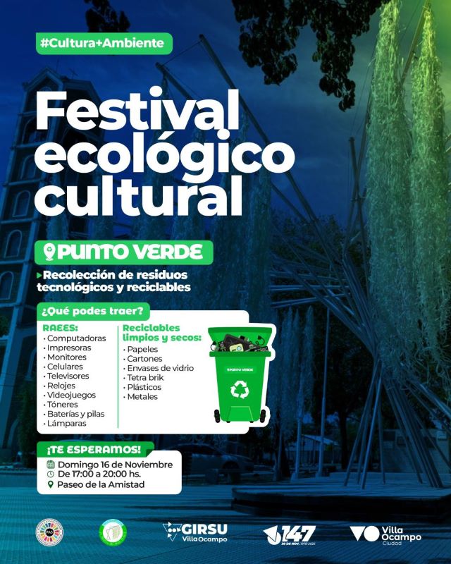 La Municipalidad de Villa Ocampo, a través de la Secretaría de Cultura y Comunicación y la Secretaría de Producción, Ambiente y Turismo, invita a toda la comunidad a participar del Festival Ecológico Cultural, un evento que marcará el cierre de la Travesía del Sauce Criollo en la ciudad.