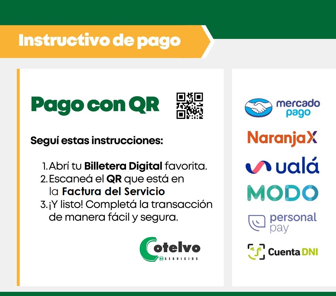 Las billeteras digitales habilitadas para abonar las facturas de COTELVO son: