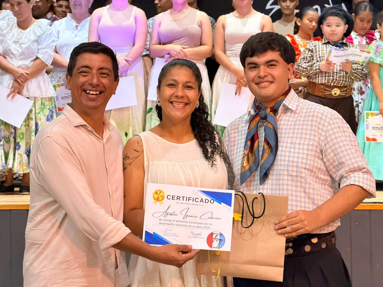 Durante el acto se realizó la entrega de certificados a los alumnos de todas las categorías de la escuela. Asimismo, se efectuaron reconocimientos especiales a los mejores compañeros y mejores bailarines, y se entregaron obsequios a los profesores Marcos Romero y Erica Arévalo, en agradecimiento por su compromiso, dedicación y labor cotidiana al frente de la institución.