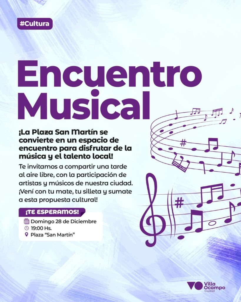 El domingo 28 de diciembre, desde las 19:00 hs, la Plaza San Martín de Villa Ocampo se transformará en un espacio de encuentro para disfrutar de la música y el talento local.