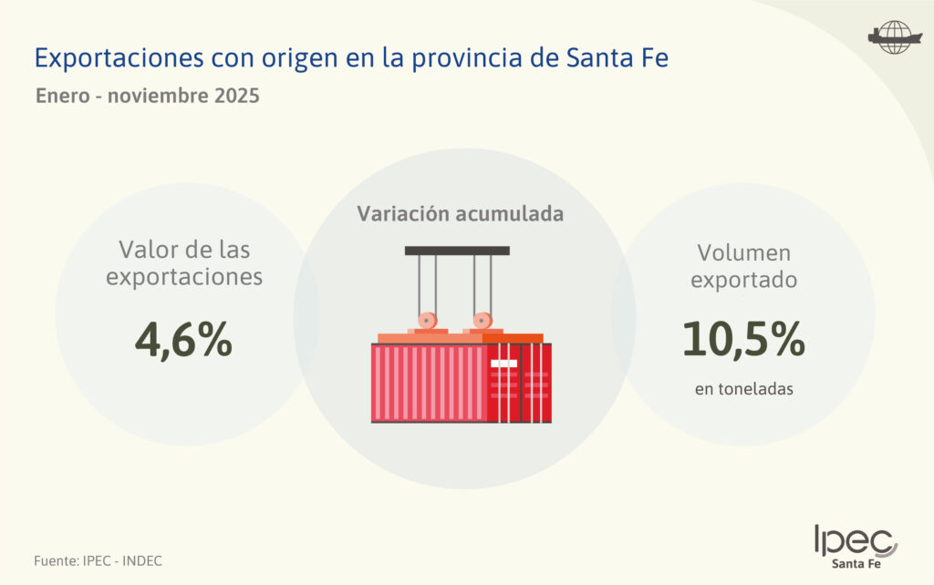 El Instituto Provincial de Estadística y Censos publicó el Informe: «Exportaciones con Origen en la provincia de Santa Fe» correspondiente al mes de noviembre de 2025.