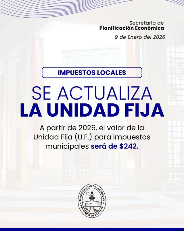 A partir de la fecha y durante todo el primer trimestre de 2026, regirá el nuevo valor de la Unidad Fija (U.F.), unidad de referencia para todas las obligaciones fiscales municipales, conforme a lo establecido en la Ordenanza Tributaria N° 45/23 y modificatorias.