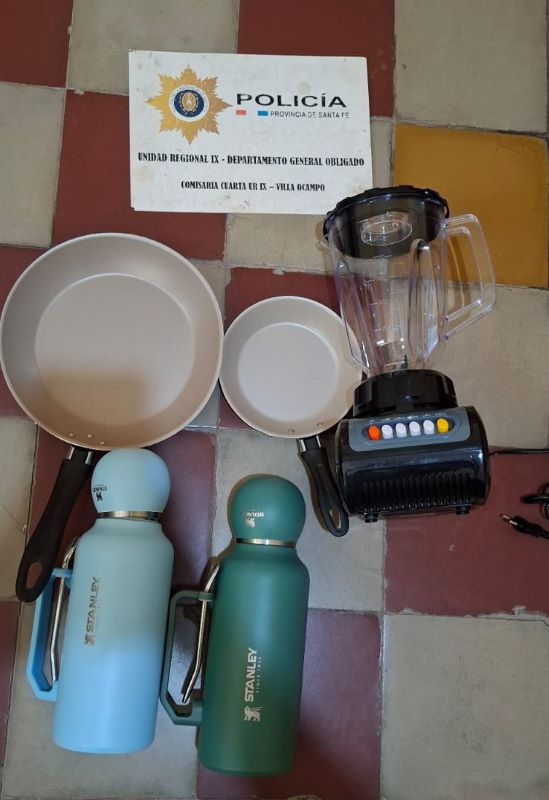 El 9 de enero, siendo las 11:15 horas, en sede de la Comisaría 4ta., radicó denuncia una vecina de Villa Ocampo, quien manifestó que en horas de la mañana personas desconocidas, previo violentar y romper la puerta de acceso a su vivienda, le sustrajeron (03) termos símil Stanley, (01) licuadora y (02) juegos de sartenes marca Tramontina, logrando reconocer al autor del hecho a través de cámaras de seguridad.