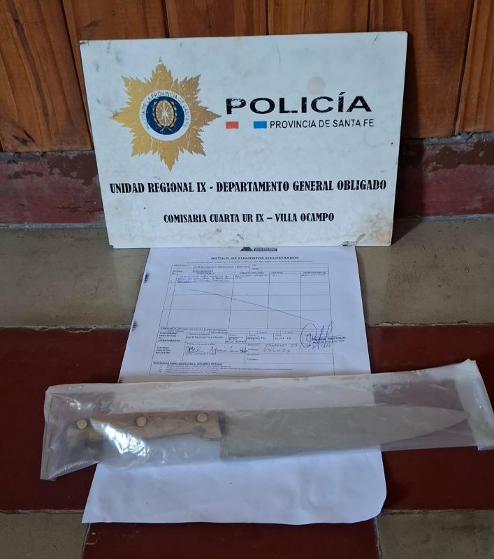 Atento a ello, personal policial se constituyó en un domicilio de calle B. Urquiza al 1200, donde fueron atendidos por un masculino mayor de edad, quien respondió de manera agresiva, profiriendo gritos, agravios e incoherencias, adoptando una actitud desafiante y portando un cuchillo en su mano. Ante esta situación, se procedió de inmediato a su aprehensión, siendo trasladado a sede policial.