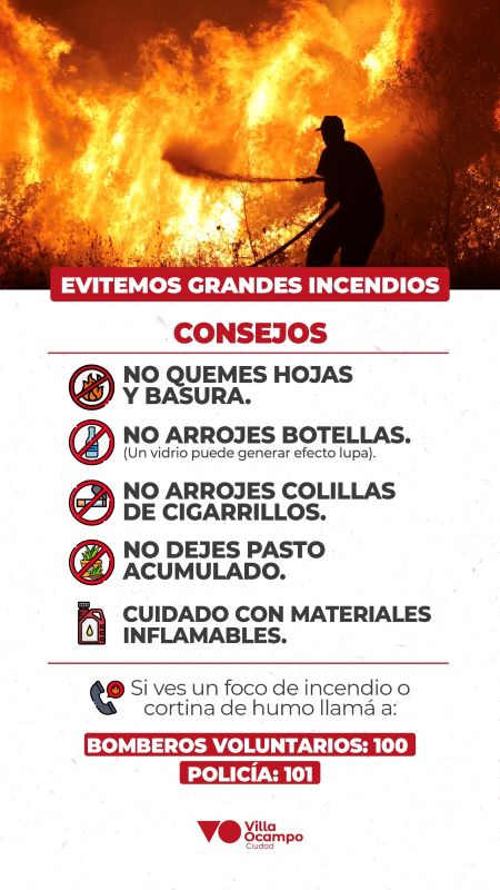 La Municipalidad de Villa Ocampo recuerda a la comunidad que la quema de pastizales se encuentra terminantemente prohibida, debido al alto riesgo que representa para las personas, el ambiente, la fauna y los bienes materiales.