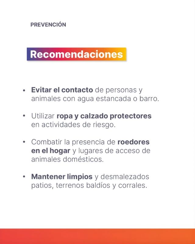 La leptospirosis es una enfermedad que puede prevenirse mediante medidas simples de cuidado. En este sentido, se recomienda evitar el contacto con aguas estancadas, no caminar descalzo en zonas húmedas y mantener patios y espacios domiciliarios limpios, libres de residuos y escombros.