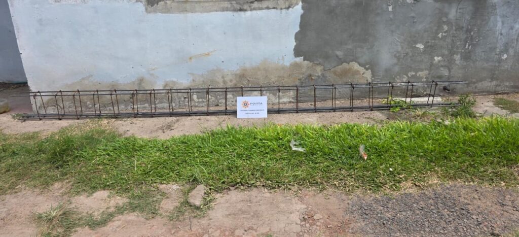 De inmediato, los efectivos realizaron un patrullaje por las inmediaciones y lograron divisar al sujeto en calle 43, entre 16 y 18, trasladando una estructura de hierro tipo cabreada de 4,40 metros de longitud, confeccionada con hierros de 12 y 6 milímetros.
