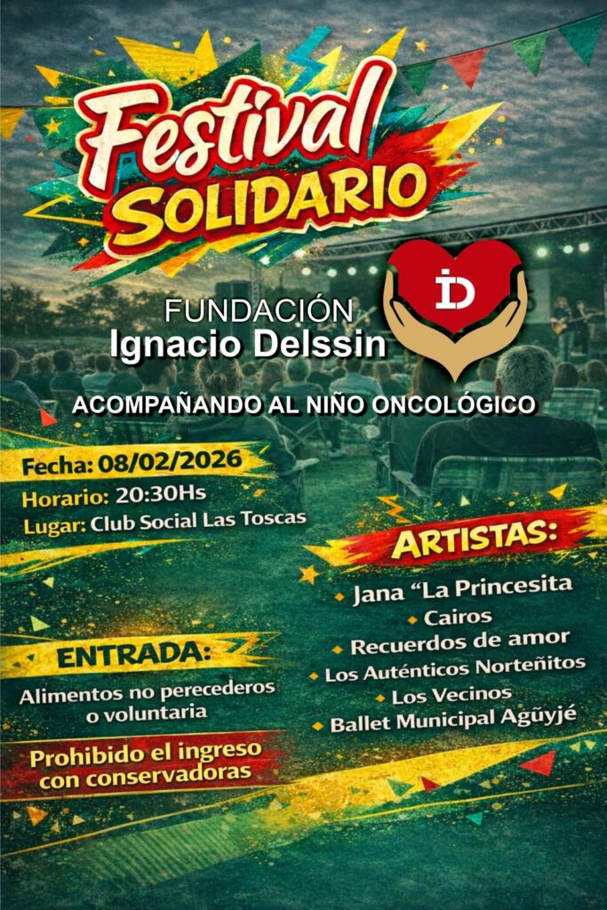 Un festival solidario con música y compromiso social se realizará en la ciudad de Las Toscas para acompañar a niños que atraviesan enfermedades oncológicas y a sus familias. La iniciativa es organizada por la Fundación Ignacio Delssin, una institución del norte santafesino que brinda contención integral a pequeños pacientes en tratamiento.