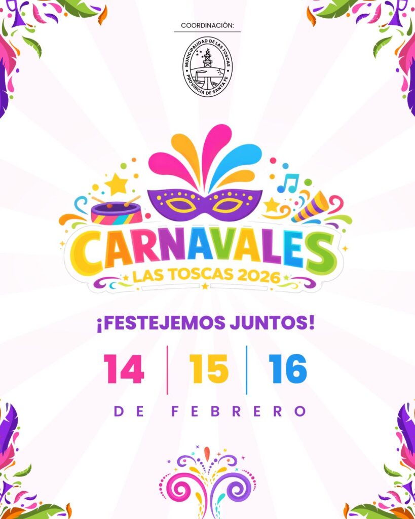 Desde la organización invitan a la comunidad a agendar la fecha y prepararse para vivir los Carnavales Las Toscas 2026, una fiesta que vuelve a reunir tradición, cultura y diversión en el corazón de la ciudad.