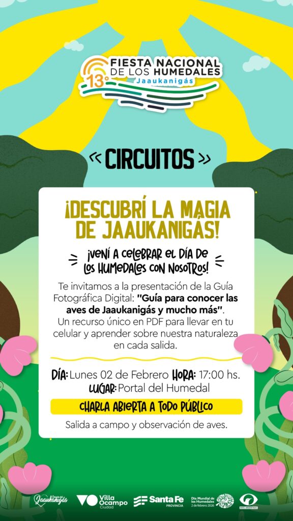 En el marco de la 13ª Fiesta Nacional de los Humedales – Jaaukanigás, el día de hoy, lunes 2 de febrero, se llevará a cabo la presentación de la Guía Fotográfica Digital “Guía para conocer las aves de Jaaukanigás y mucho más”, una propuesta educativa y abierta a toda la comunidad.