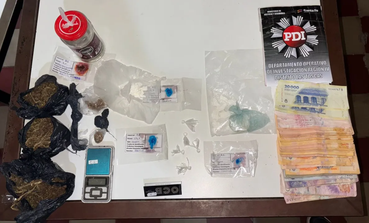Como resultado de los procedimientos realizados en un domicilio del barrio 8 de Octubre, los investigadores secuestraron $142.700.- en efectivo, una balanza de precisión, ocho envoltorios con clorhidrato de cocaína con un peso total de 38,1 gramos y ocho envoltorios con cannabis que arrojaron un peso total de 107,2 gramos, además de otros elementos de interés para la causa.