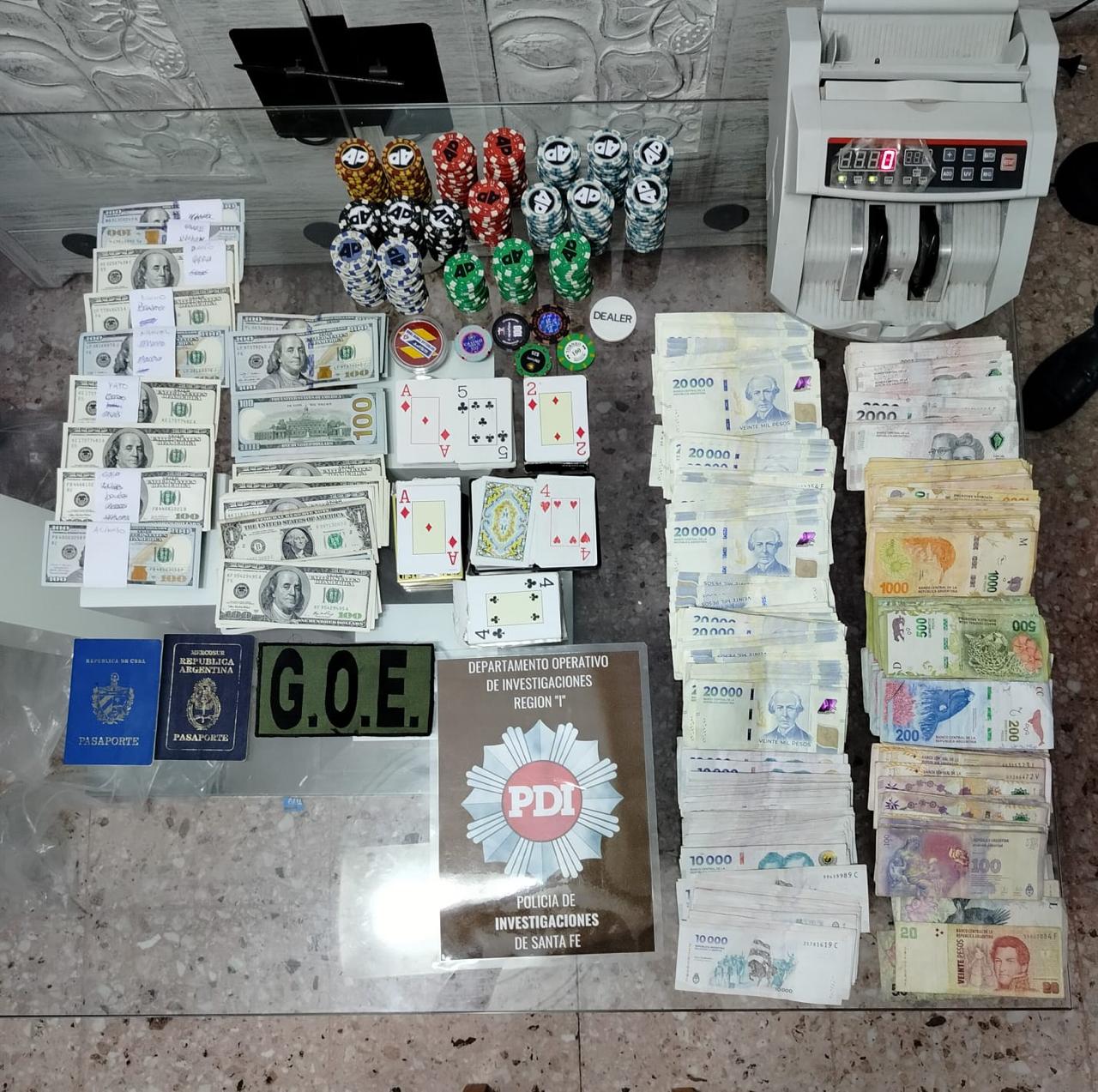 Agentes de la Policía de Investigaciones (PDI) y de grupos tácticos de la Policía de Santa Fe, dependientes del Ministerio de Justicia y Seguridad del Gobierno de Santa Fe, desbarataron una casa de apuestas ilegales en un procedimiento realizado entre la noche del jueves y la madrugada del viernes en la ciudad de Santa Fe. Como resultado del procedimiento fueron aprehendidas ocho personas y puestas a disposición del Ministerio Público de la Acusación (MPA). Además se secuestró material estupefaciente y alrededor de 20 millones de pesos entre monedas nacional, extranjera y valor de fichas que se encontraban exhibidas arriba de las mesas de póker, en el marco de una causa que investiga el fiscal Roberto Olcese.