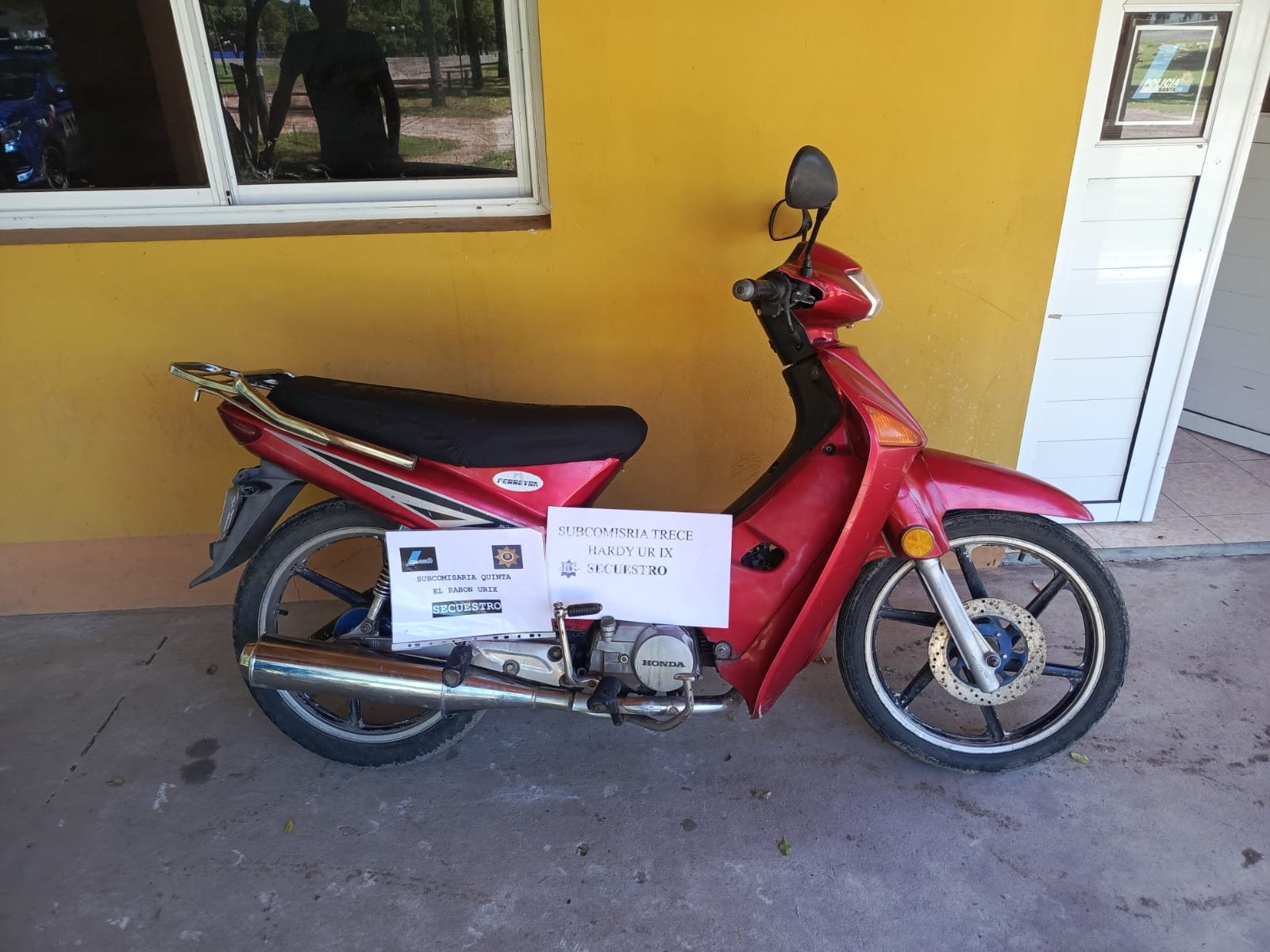 Personal de la Subcomisaría 13 de Campo Hardy, en conjunto con efectivos de la Subcomisaría 5ª de El Rabón, logró recuperar una motocicleta que había sido sustraída en las primeras horas de este martes.