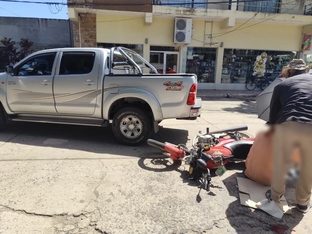 El hecho ocurrió alrededor de las 11.25 horas en la intersección de calle 21 y 6, donde por causas que se tratan de establecer colisionaron una camioneta Toyota Hilux 4×4, color gris plata, conducida por una mujer mayor de edad domiciliada en esa localidad, y una motocicleta Motomel 125 cc, color roja, guiada por un hombre mayor de edad residente en el medio.