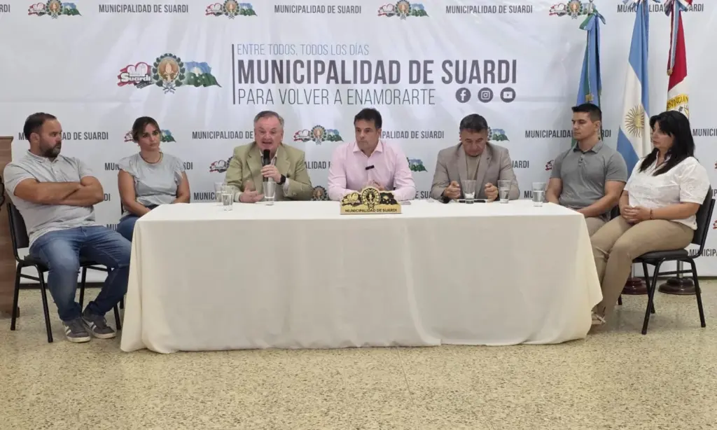 En la sala de conferencias de la Municipalidad de Suardi “Oswaldo Pinetti” se desarrolló un encuentro de prensa para informar sobre la situación laboral que atraviesa la empresa Verónica, que afecta a 70 trabajadores locales. La misma fue encabezada por el intendente Leandro Gastaldi, por el senador Felipe Michlig y el diputado Marcelo González.
