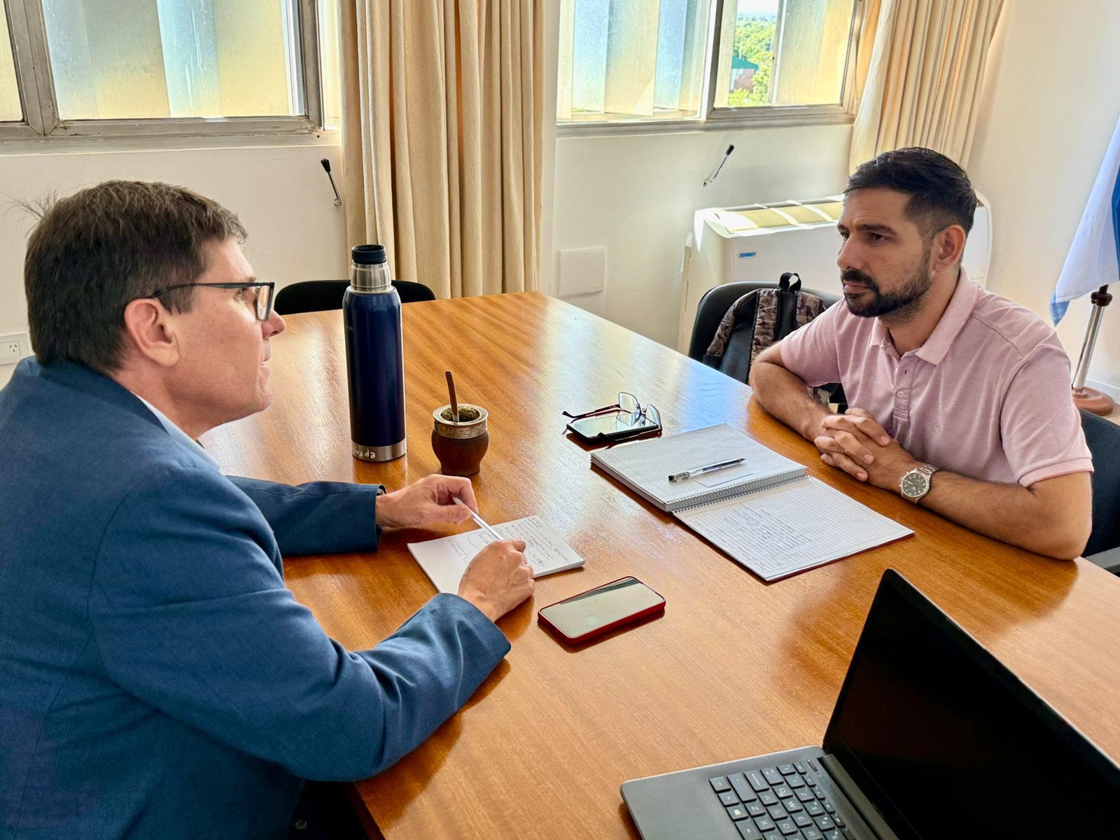 Durante el encuentro se abordaron distintos temas prioritarios para la ciudad. Entre ellos, la financiación de la escritura del terreno de la Escuela N° 847 “José Ignacio Centeno”, destinado a consolidar el espacio del patio, una demanda histórica de la comunidad educativa.