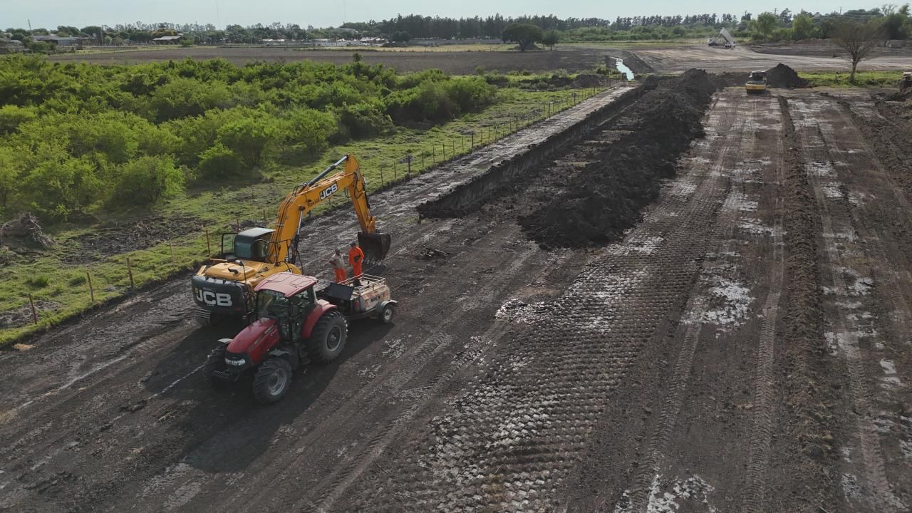 Además, el funcionario responsable de la DPV dio detalles precisos del avance de la obra, señalando que “en Calle 25 colocamos el 100% de caños de 800 mm. y un 30% de caños de 600 mm. para desagüe; en Calle 14 completamos la colocación de caños de 1000 mm. y en el enlace de la segunda rotonda a Calle 14 completamos la excavación de cunetas; y sobre Calle 2 tenemos un 70% de avance en excavaciones, donde también estamos trabajando en las bases de asiento. Ya completamos el 100% de limpieza y desbosque de la zona de caminos e instalamos todos los alambrados”.