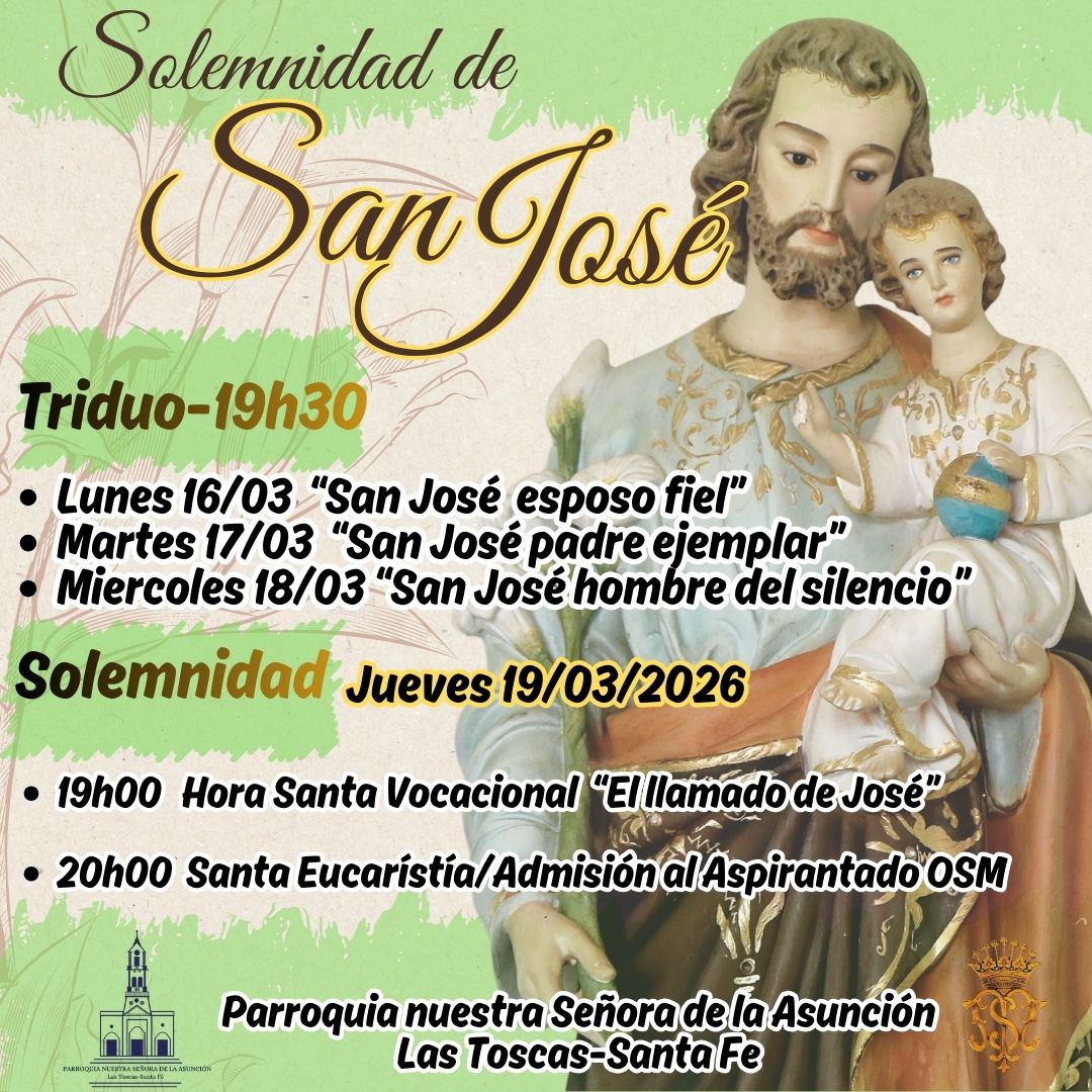 Jueves 19 a las 19.00 Hora Santa Vocacional “El llamado de José” y a las 20.00 horas Santa Eucaristía con admisión al Aspirantado de la Orden Siervos de María.