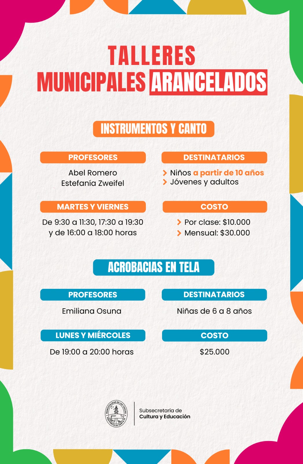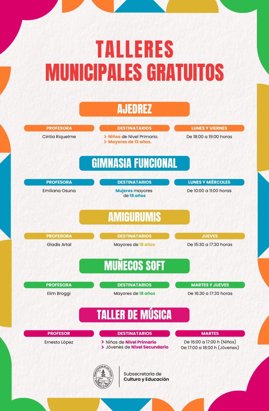 Este lunes 6 de abril, en el SUM de la Casa de Cultura, se realizó una conferencia de prensa para anunciar oficialmente el lanzamiento de los Talleres Municipales 2026. El evento fue encabezado por el intendente de las Toscas Iván Sánchez, y la Subsecretaria de Cultura y Educación Silvia Dall´agol, quienes brindaron detalles sobre las propuestas educativas para el próximo año.