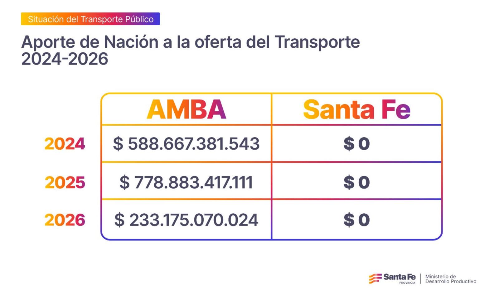Sin embargo, ante el atraso de los pagos -que además son desiguales-, Puccini valoró que “Santa Fe responde con gestión”, y dijo que para que el sistema de transporte siga funcionando “la Provincia ya destinó más de $ 193.000 millones, sosteniendo de manera prioritaria el Boleto Educativo y Rural”, y afirmó que “la Nación nos da la espalda, pero la Provincia invierte para que los santafesinos puedan seguir yendo a trabajar y a estudiar”.