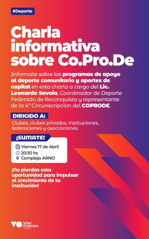 La actividad contará con la presencia de Leonardo Savoia, quien brindará una explicación detallada sobre el funcionamiento del Co.Pro.De., abordando las distintas herramientas y programas disponibles para el financiamiento de instituciones deportivas.