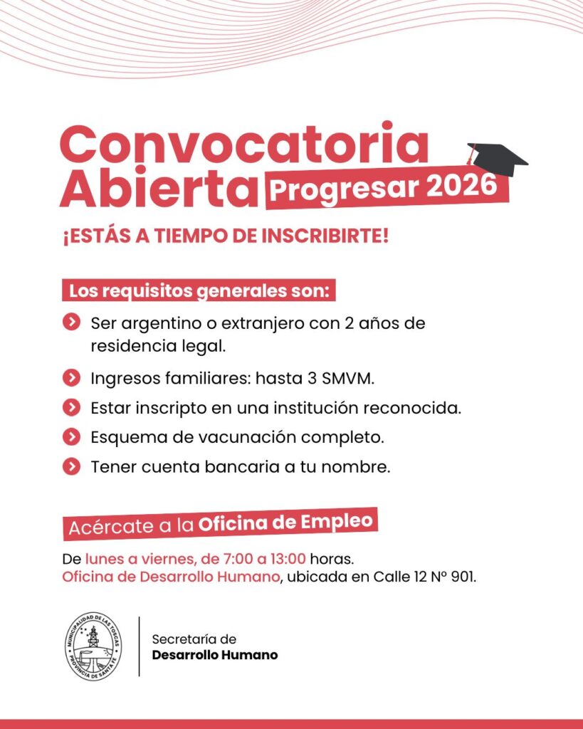 Inscripción online: http://argentina.gob.ar/progresar (con usuario Mi Argentina)