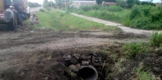 Villa Ocampo: Una alcantarilla de gran porte en mano sur del...
