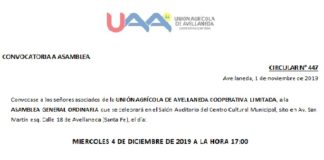 Unión Agrícola de Avellaneda: Convocatoria a Asamblea General Ordinaria