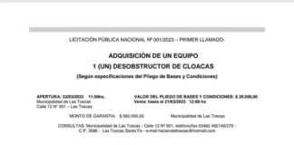 Las Toscas: Licitación para adquirir un equipo desobstructor de Cloacas