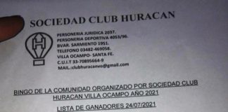 Villa Ocampo: Sociedad Club Huracán llama a sus asociados a la...