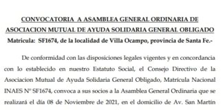 Convocatoria Asamblea General Ordinaria de Asociación Mutual de Ayuda Solidaria General...