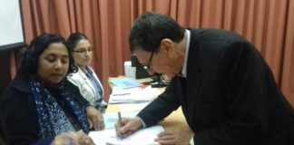 Estela estuvo con el ministro Garibay en la firma de varios...