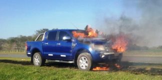 Incendio total de una camioneta sobre ruta 11 Las Garzas