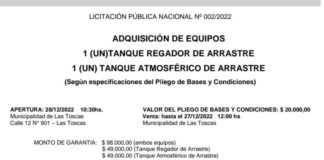 Las Toscas: Llamado a licitación